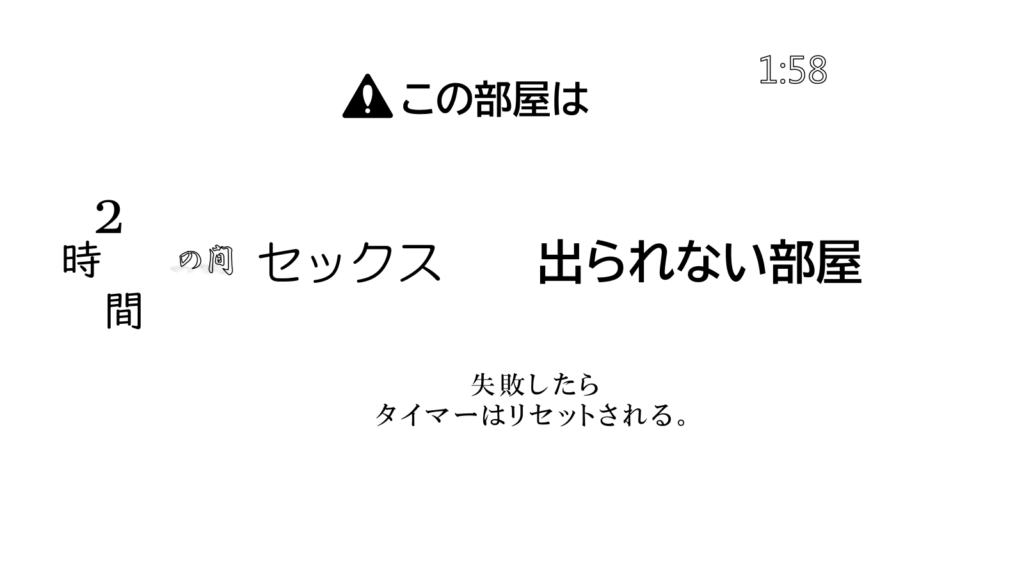 「この部屋は」の注意書きが最初の画面にあったかどうか、そしてタイマーが画面上どこにあるかは不明である(右上とする)。